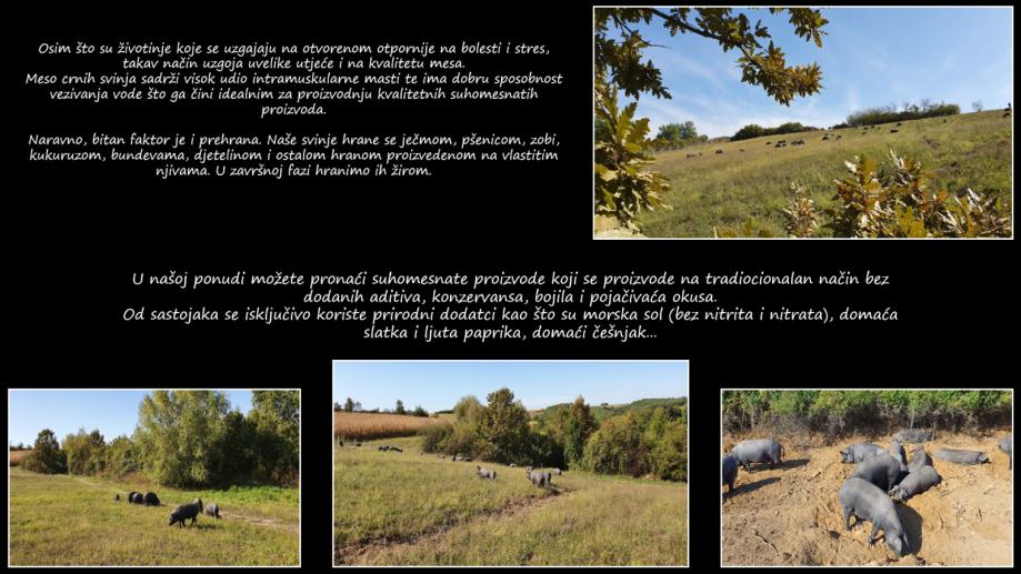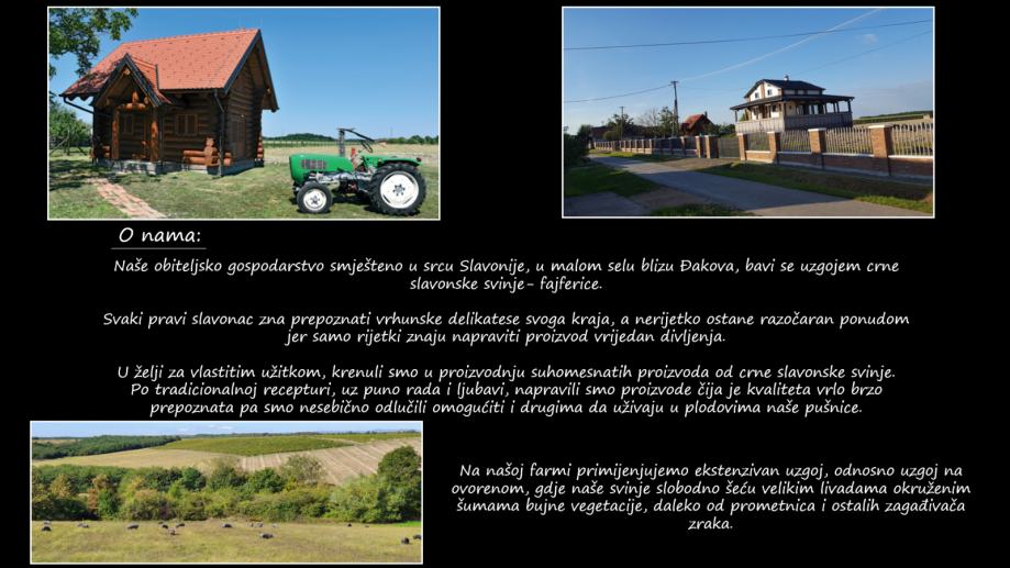Na našem obiteljskom poljoprivrednom gospodarstvu u srcu Slavonije, blizu Đakova, uzgajamo crne slavonske svinje Fajferice i proizvodimo vrhunske delicije: