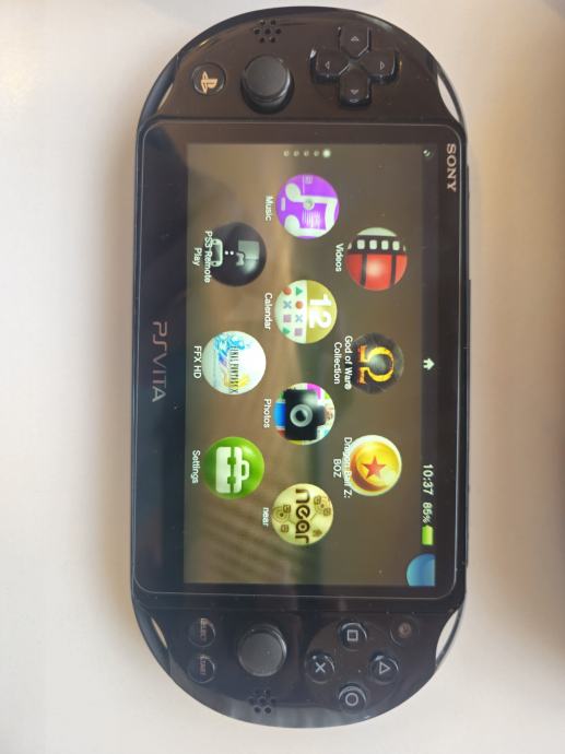 Psp vita , 128 gb kartica modificirana mogu se igrice skidati. Kuciste za gejmanje torbica punjac na njoj kaljeno te original kutija