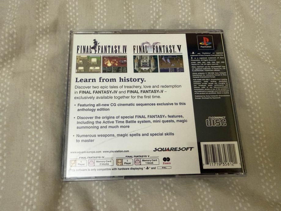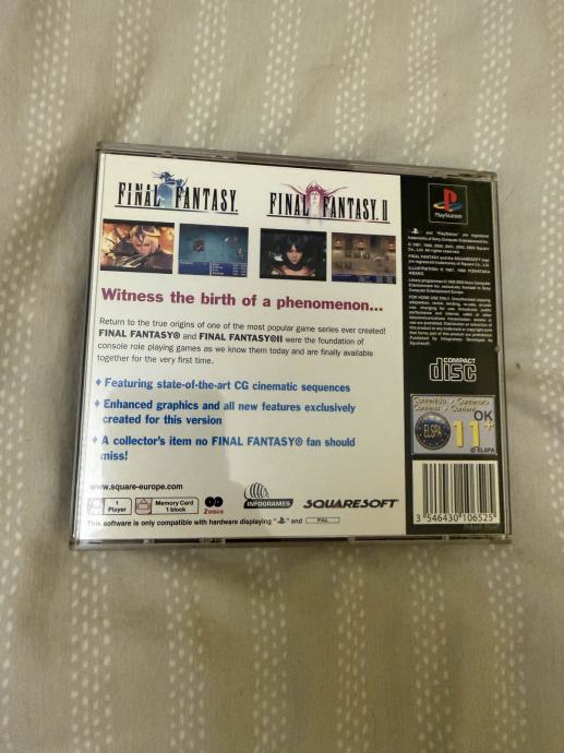 U kolekciji se nalaze Final Fantasy Origins (I i II), Final Fantasy Anthology (IV i V), Final Fantasy VI (samostalno izdanje), Final Fantasy VII, Final Fantasy VIII i Final Fantasy IX. Radi se o kompletnom PS1 Final Fantasy setu koji se rijetko pojavljuje na prodaju, posebno u ovakvom stanju.