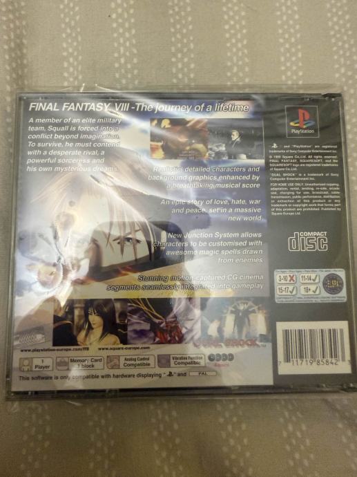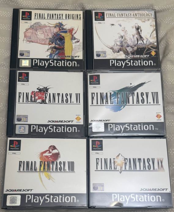 Prodajem kompletnu i rijetku PlayStation 1 PAL Final Fantasy kolekciju. Sve igre su originalne PAL verzije, black label, CIB i u skoro mint stanju. Kolekcija je bila u privatnom vlasništvu i čuvana s pažnjom.