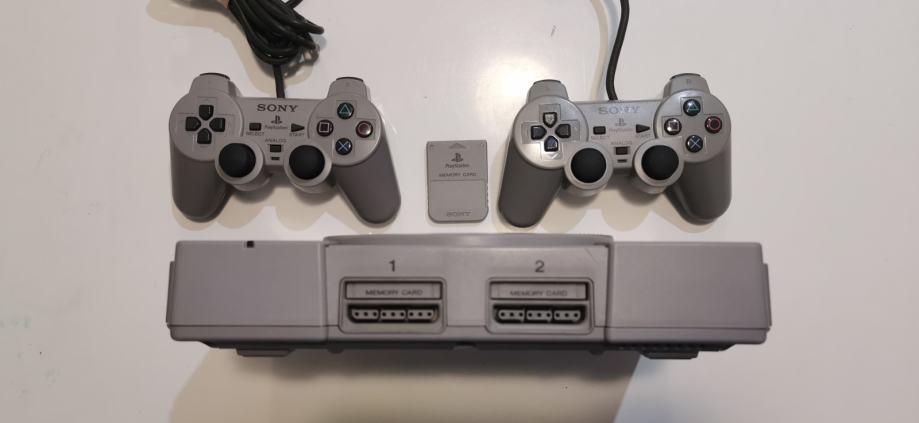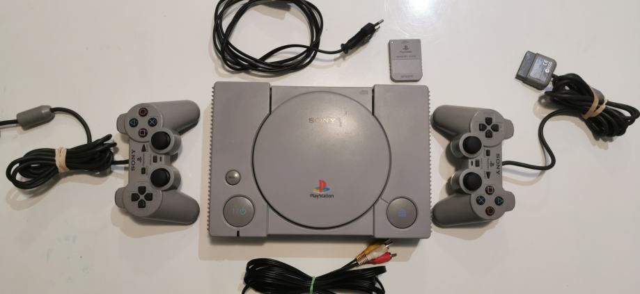Uz konzolu dolaze dva SCPH 1200 DualShock kontrolera koji su u top stanju kao što je vidljivo na slikama i 100% su funkcionalni,sve tipke,oba analoga i oba vibro motora rade.U paketu su još kablovi za AV i napajanje kao i orginalna memory kartica i dvije igre.