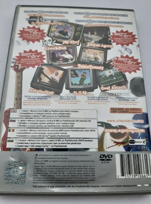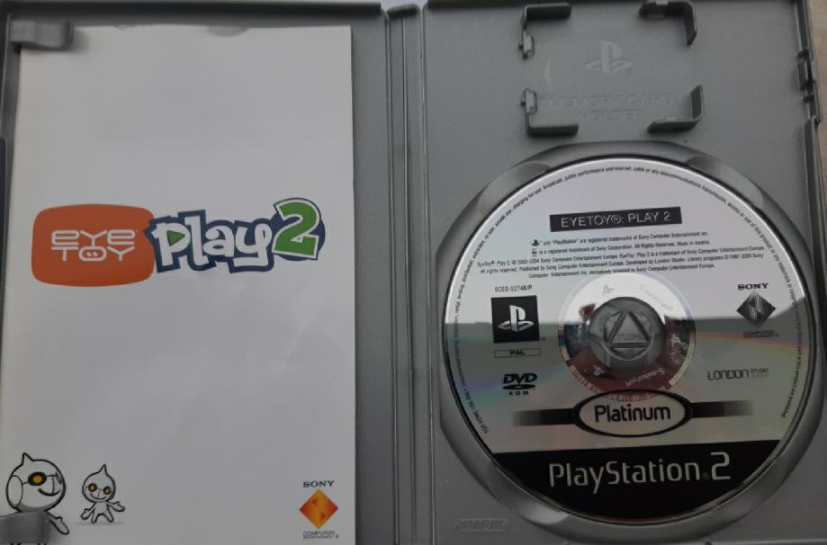 Original i ispravna igrica Eye Toy Play 2 za Sony Play station 2 / PS 2 konzole. Disk, kutija i uputstva u odlicnom stanju. Igrica je na engleskom jeziku.