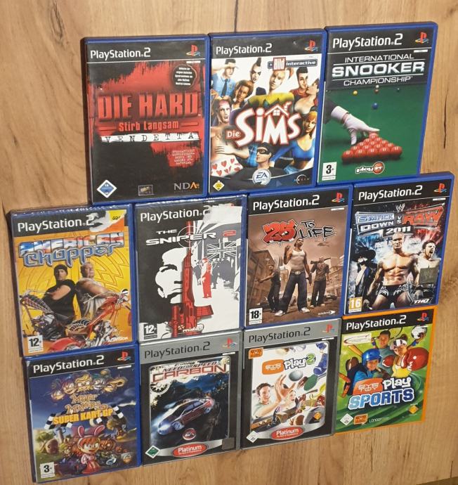 Sve igre su za PlayStation 2 konzolu. Moguća kupnja pojedinačno ili sve zajedno. Cijene od 3 do 12e.