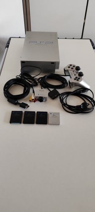 Prodajem Sony PlayStation 2 konzolu u srebrnoj boji. Uz konzolu dolazi DualShock 2 kontroler (također srebrni), EyeToy kamera, AV kabel, strujni kabel te tri memory card kartice.