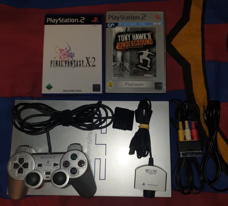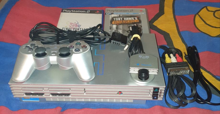 Prodajem rabljenu srebrnu PlayStation 2 konzolu koja dolazi s igrama. Konzola je potpuno je ispravna, brzo ucitava igre.