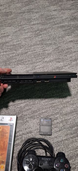 Playstation 2 zadnji model. Taj model nema adapter za napajanje vec normalan kabl za struju. U dobrom je stanju i radi super. Sve sa slike ide u kompletu av kabl,kabl za struju,joystick,memorijska i igrica sa slike. Moguca je i proba kod mene prilikom kupnje.