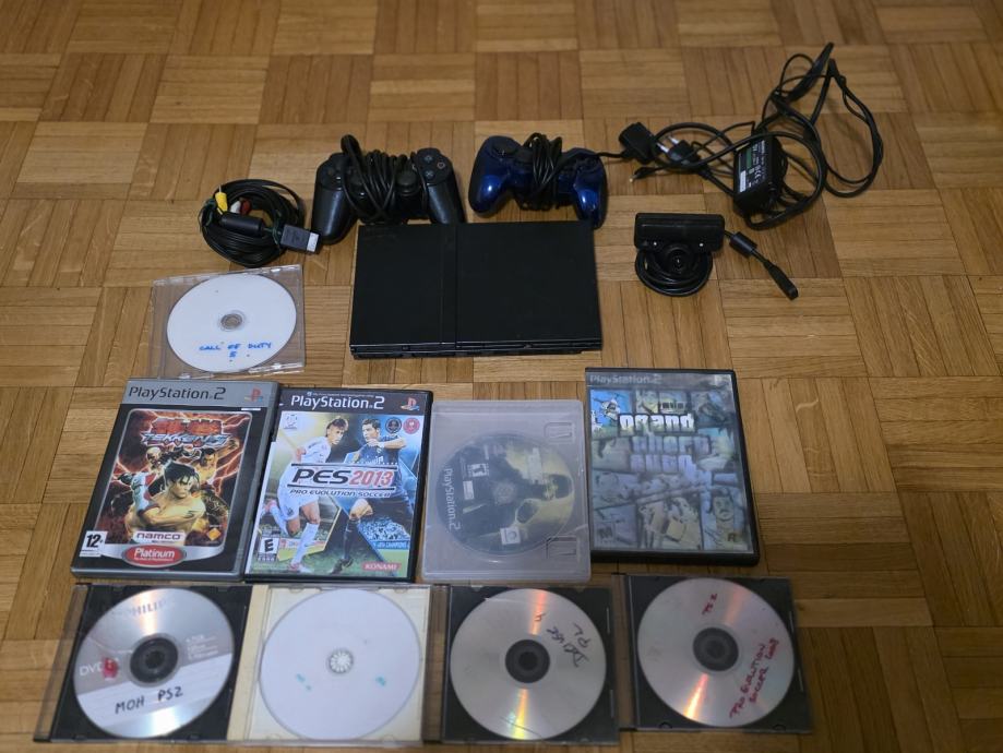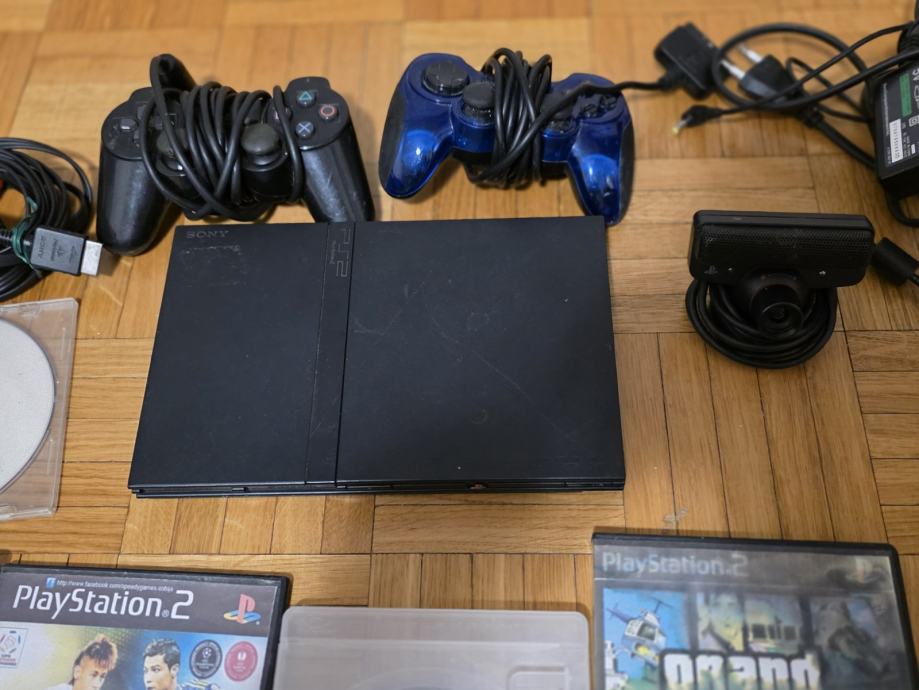 Uz konzolu idu dva kontrolora,originalna camera,pripadajuci kablovi i 9 igra.