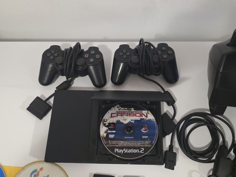 Ispravna cipirana konzola,uz dva kontrolora,dvije memo card 8mb,pripadajuci kablovi,volan +pedale te 9 igra.