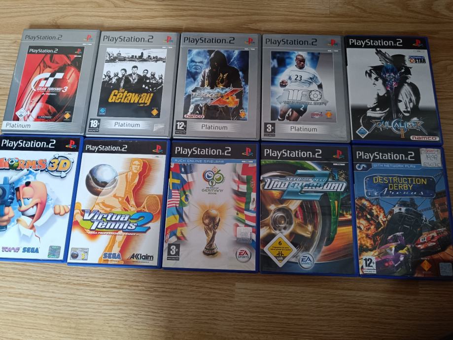 Prodajem rabljenu Sony PlayStation 2 konzolu sa čak 10 igrica raznih žanrova. Dolazi s dva joysticka (crni i plavi) te svim potrebnim kablovima za spajanje. Konzola je ispravna i spremna za igranje, a kolekcija igara uključuje sportske, trkačke i akcijske naslove.