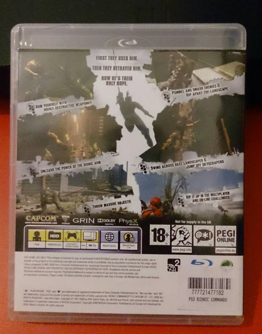 Prodaje se PS3 igra BIONIC Commando. Igra je u odličnom stanju i iz kućne kolekcije. Orginal kutija, knjižica i cd.