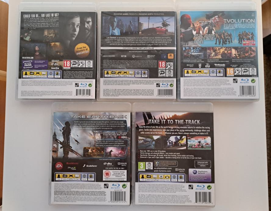 Prodajem set od 5 igara za PlayStation 3 u kompletu za 45 €