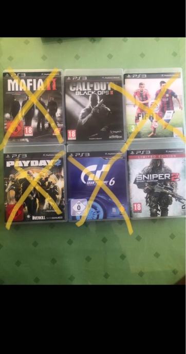 Prodajem ps3 igrice jedan komad 8€ koje su prekrizene zutim flomasterom su prodane pozz