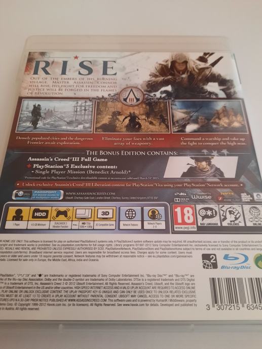 PS3 Igra "Assassin's Creed III / Exclusive Edition" (black label)