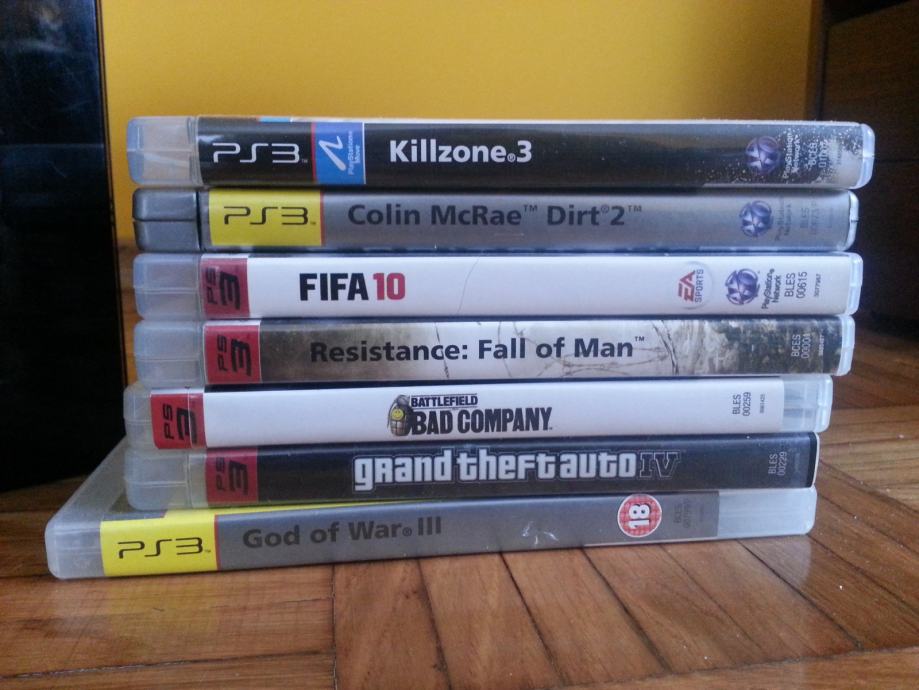 Prodajem PlayStation 3 60 gb sa 7 igrica sa slike. Na sebi ima jos fifu 2013 i top spin 4. Dolazi sa jednim original joystickom i jednim zamjenskim. Cijena je 1000 kn. cijena je fiksna. Moze e-mail ili sms ako se ne javim.