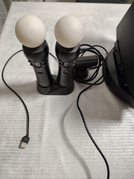 Uz konzolu dolazi stalak koji je ujedno i punjač, 2 originalna sony kontrolera, 2 motion kontrolera sa stalkom i punjačem, te ps3 eye ty. kamera.