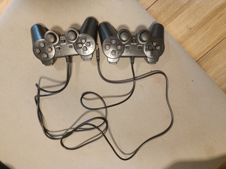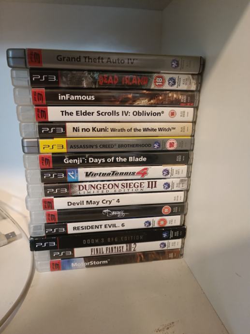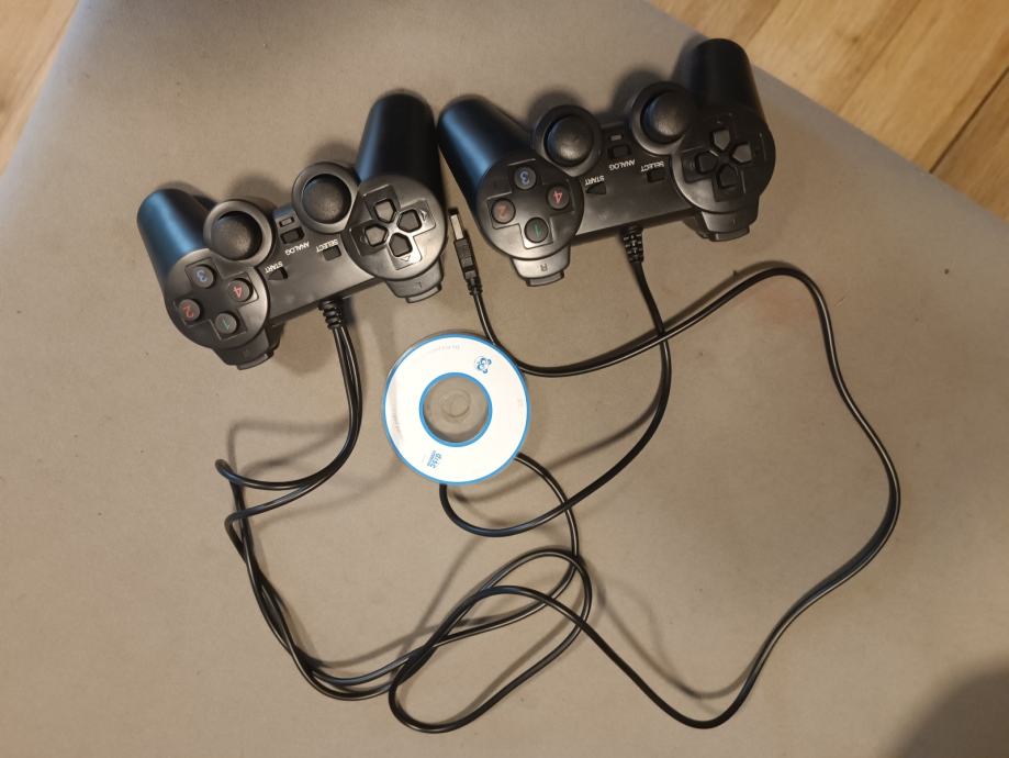 Prodajem rabljene PS3 kontrolere, crne boje. U paketu se nalaze dva kontrolera s kabelima te CD i dodatni konektori/adapteri i 15 igrica uz njega koje su vidljive na slikama.