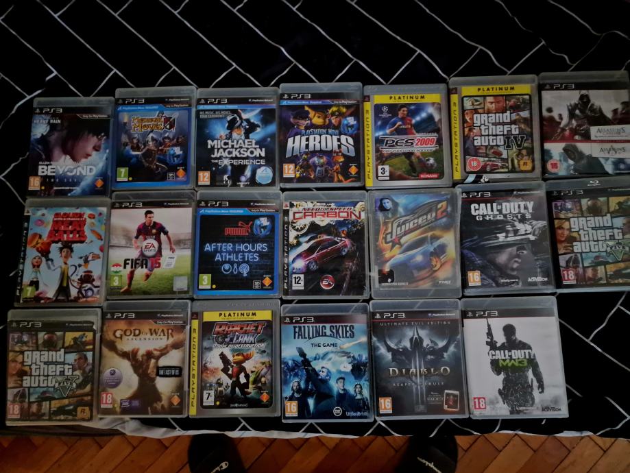 Ps3 fat model u dobrom stanju dolazi bez igračih kontrolera, dolazi sa 20 igara sa naslovima poput : Fifa 15, Pes 2009, God of War, Diablo, GTA V (2 kom) jedan ima poteškoće zato postoje dva itd