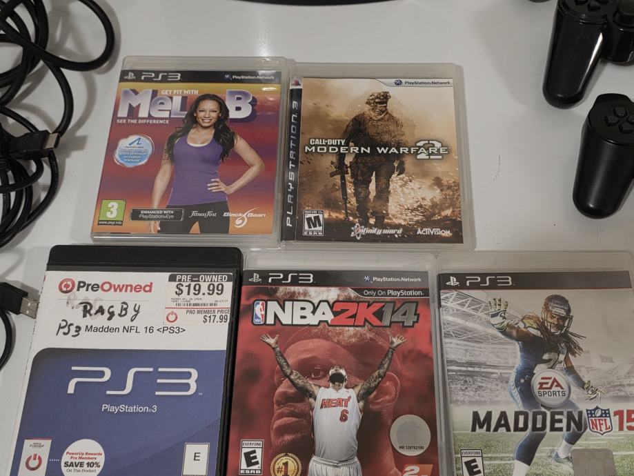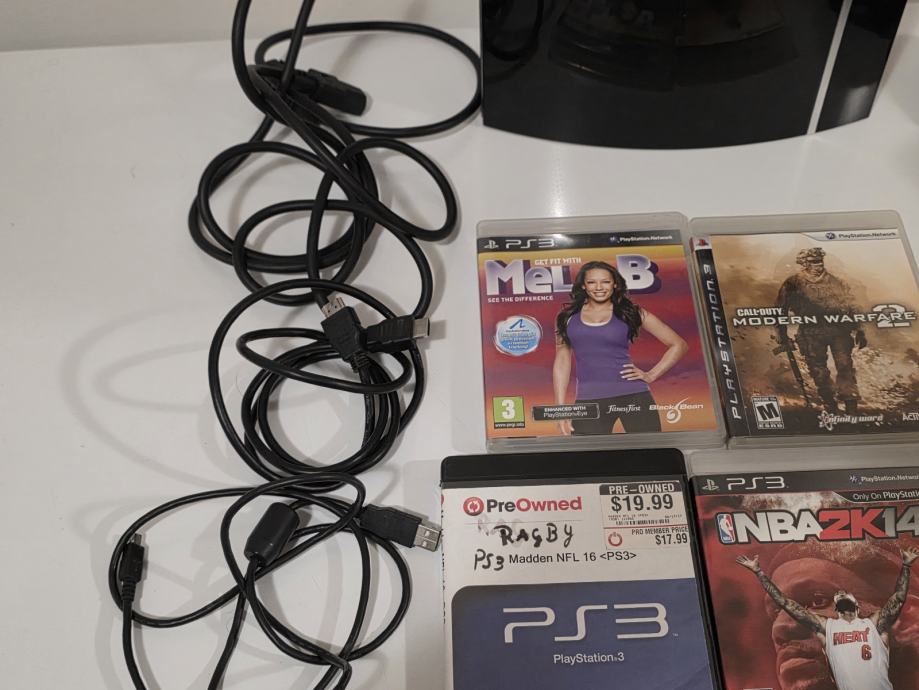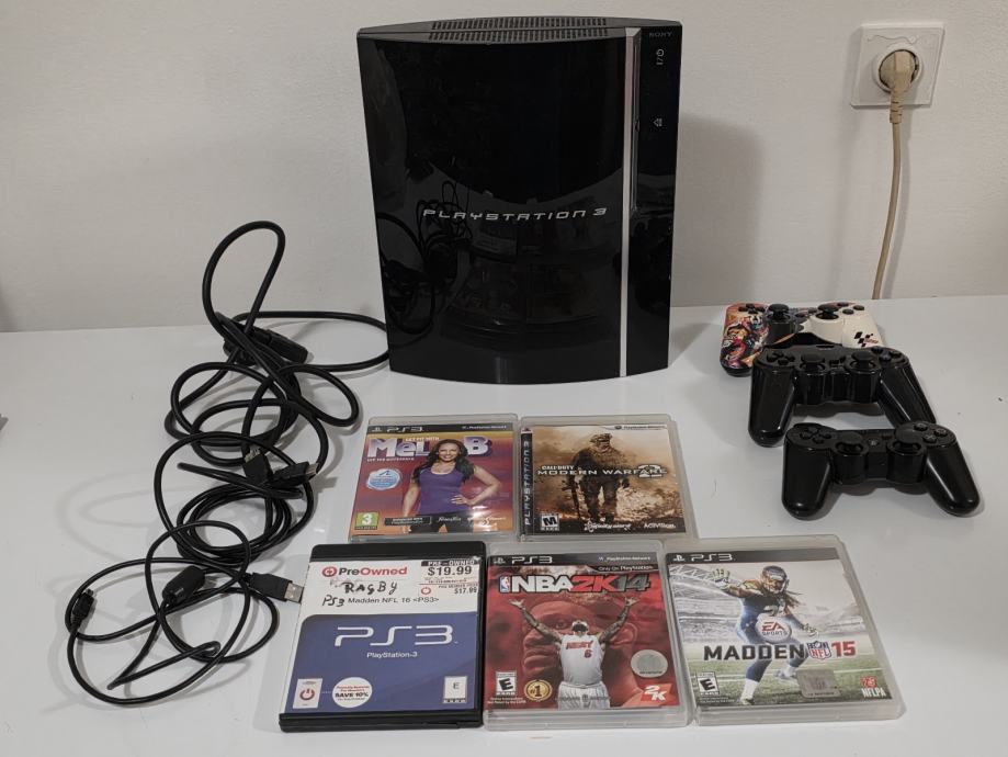 Uz konzolu 3 kontrolora,2 rade jednome je baterija otisla,svi pripadajuci kablovi-strujni,hdmi,usb za kontrolor,te 5 igra