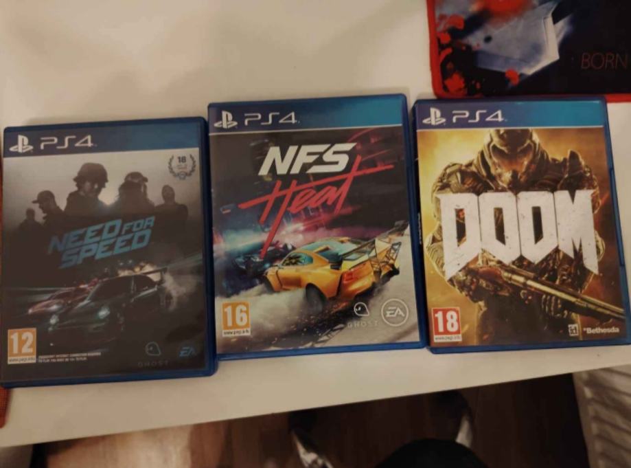 Prrodaju se 3 igre za ps4, need for speed, need for speed heat i doom 2016. Diskovi jako dobro očuvani igrice jako rijetko igrane.