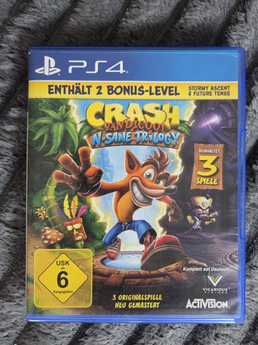 Prodajem Crash Bandicoot N. Sane Trilogy za PlayStation 4.. Radi se o remasteriranoj kolekciji koja uključuje tri originalna Crash Bandicoot naslova s poboljšanom grafikom i dva bonus levela.
