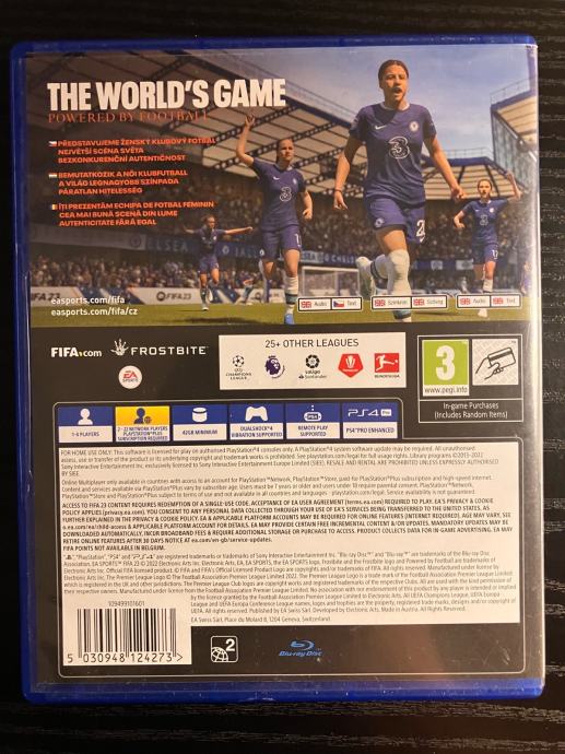 FIFA 23 - PS4 igra. Savrseno stanje diska. 6 fotografija je u oglasu. Cijena je 22 EUR za osobno preuzimanje u Popovači. Troškovi slanja su dodatna 3 EUR Tiskom ili Poštom za unaprijed uplatu na račun ili 5 EUR za plaćanje pouzećem. Box Now slanje je 2 EUR. Pakiram tako da je sigurno u transportu. Odgovaram na pozive, poruke putem Njuškala, SMS, Viber.
