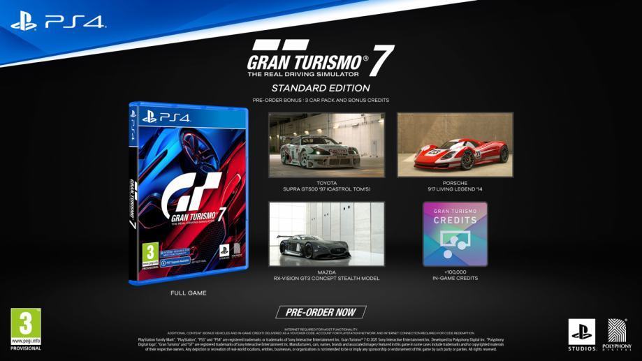U objektima Brand Central i Used Car Dealership dostupno je više od 420 automobila od prvog dana i zato Gran Turismo 7 uspješno dočarava izgled i osjećaj klasičnih motora te nevjerojatno naprednih superautomobila do neviđenih pojedinosti. Svakim se automobilom upravlja drukčije i svaki pruža jedinstveni osjećaj dok voziš na više od 90 staza u dinamičkim vremenskim uvjetima, uključujući i klasične staze iz povijesti GT-a.