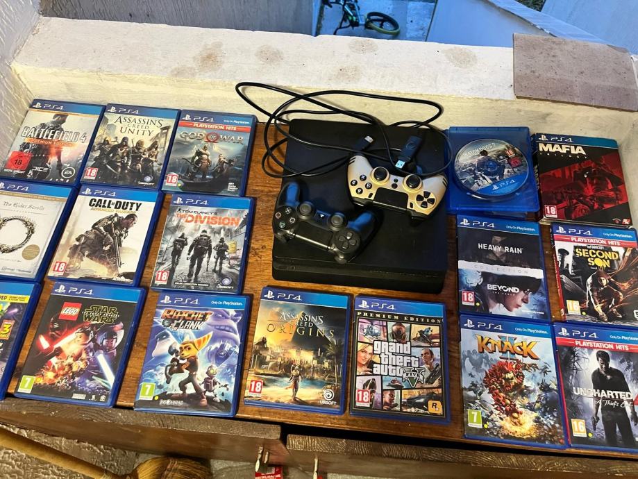Prodajem Playstation4 i 17 igrica plus dva joystika. Plejka u odličnom stanju. Korištena jako malo, večinom za gledanje filmova i youtube. Također igrice jako rijetko korištene nisu sve ni igrane.