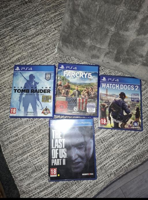 Prodajem kolekciju PlayStation 4 igara koje rade i na PS5 konzoli. U ponudi su popularne igre Rise of the Tomb Raider, Far Cry 5, Watch Dogs 2 i The Last of Us Part II, sve u odličnom stanju. Igre su kompatibilne s PS5 što ih čini izvrsnom prilikom za vlasnike najnovije Sony konzole.Igrice mogu slati HR poštom.