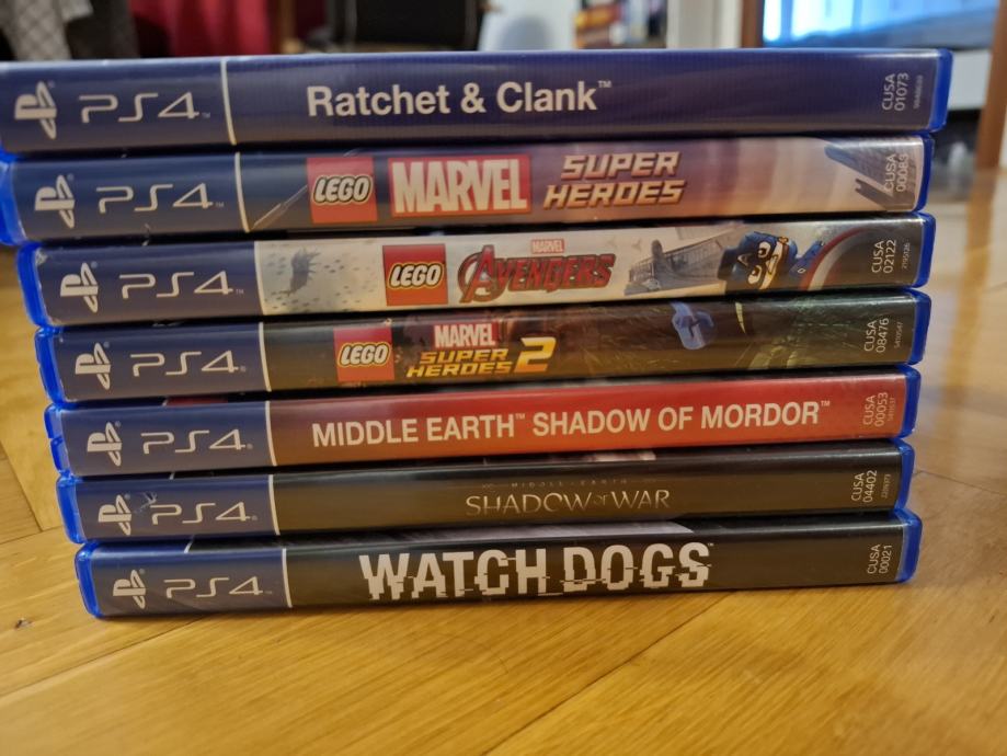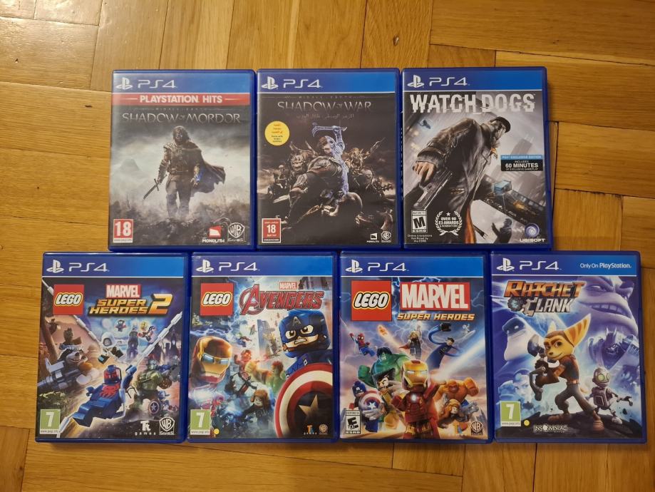 Prodajem rabljenu kolekciju PlayStation 4 igara koja uključuje popularne naslove poput Ratchet & Clank, LEGO Marvel igre, Middle Earth: Shadow of Mordor, Shadow of War i Watch Dogs. Sve igre su u dobrom stanju.