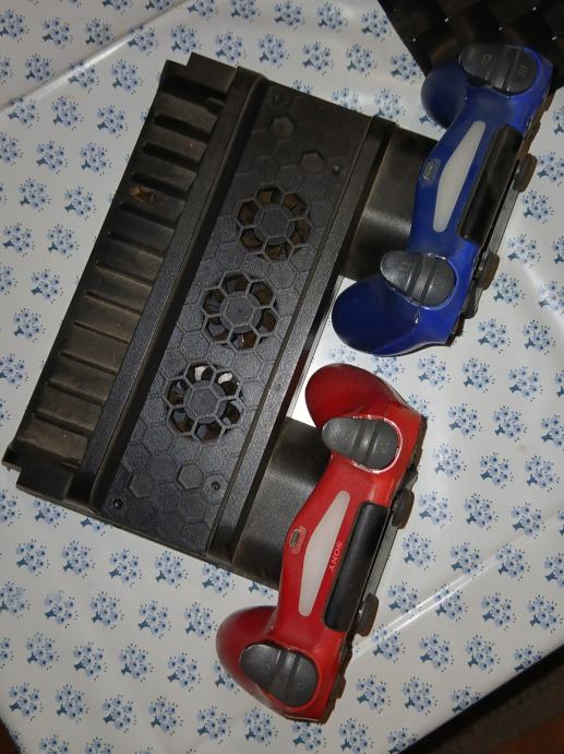 Prodajem PlayStation 4 konzolu s 4 kontrolera. Uz konzolu dolazi stalak za vertikalno postavljanje i stalak za punjenje kontrolera,sluzi i za hlađenje tjekom igranja. Konzola je u funkciji i radi bez problema.