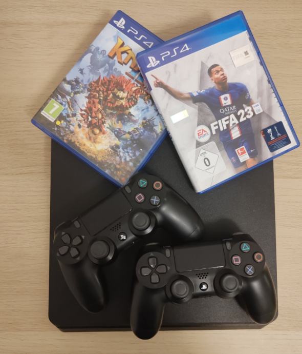 Stvari dobivene za cijenu od 150 eura: hdmi kabal, napojni kabal, 2 bežićna joysticka , 2 ps4 igrice i playstation konzola.