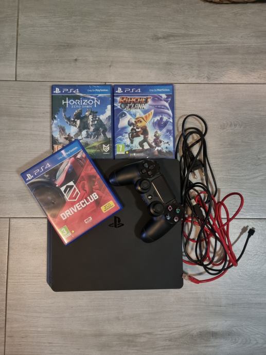 Prodajem svoj rijetko korišteni PlayStation 4. Playstation je u izvrsnom stanju, te nema nikakvih problema niti oštećenja. Uz njega prodajem i originalni joystick, te 3 igrice za PS4: Drivelub, Zero Dawn Horizon, Ratchet and Clank. Uz to šaljem i prateće kablove.