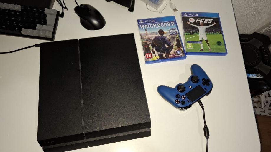 Prodajem PlayStation 4 u odličnom i potpuno ispravnom stanju. Uz konzolu dolazi originalni kontroler, igre na CD-u FC 25 i Watch Dogs 2, te instalirana igra The Call of the Hunter. Konzola radi bez ikakvih grešaka, spremna je za korištenje i prodaje se jer se ne koristi.