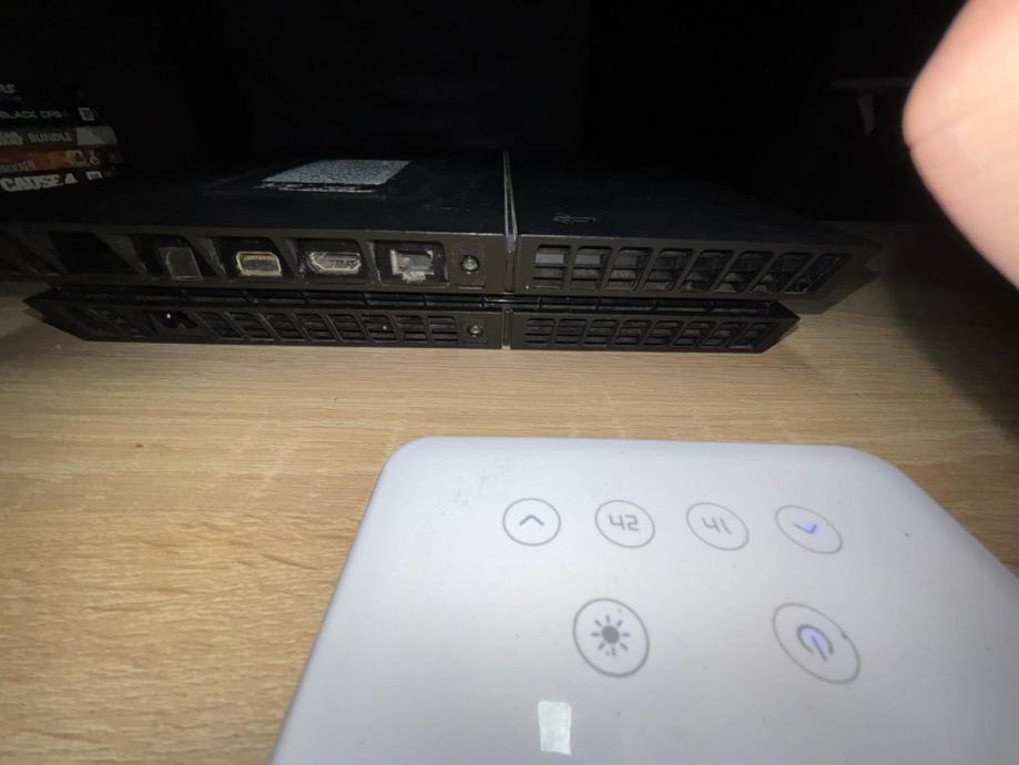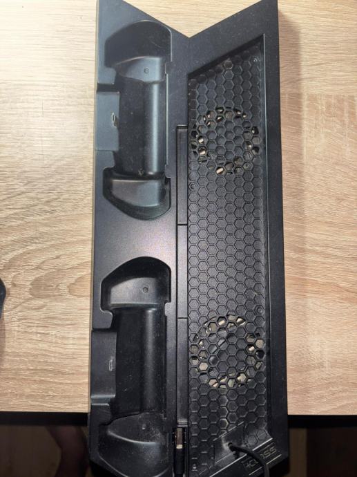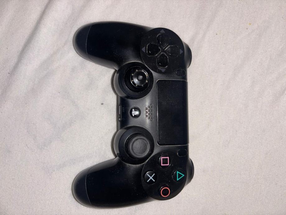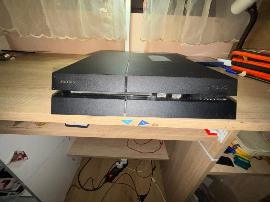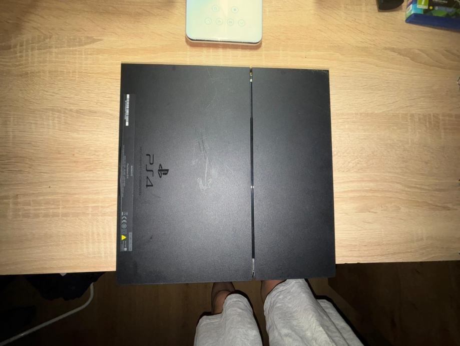 Ps4 konzola rabljena,Ima bijelo ljepilo na njemu od od odljepljivanja stikera s 3 kontrolera,Jedan ima stick drift a to je crveni kontroler i ima 7 igrica i punjaci za kontroler i hladnjak za ps4 mini tipkovnica te daljinski za ps4