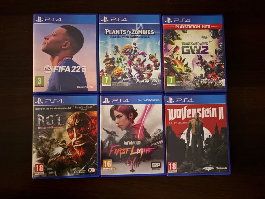 Prodajem rabljeni PlayStation 4 Pro s kapacitetom od 1 TB, dolazi s dva kontrolera (crveni i maskirni) te stanicom za punjenje. Konzola je u dobrom stanju i uključuje HDMI kabel i kabel za napajanje. Osim toga, u cijenu je uključeno 6 igrica vidljivih na slici.