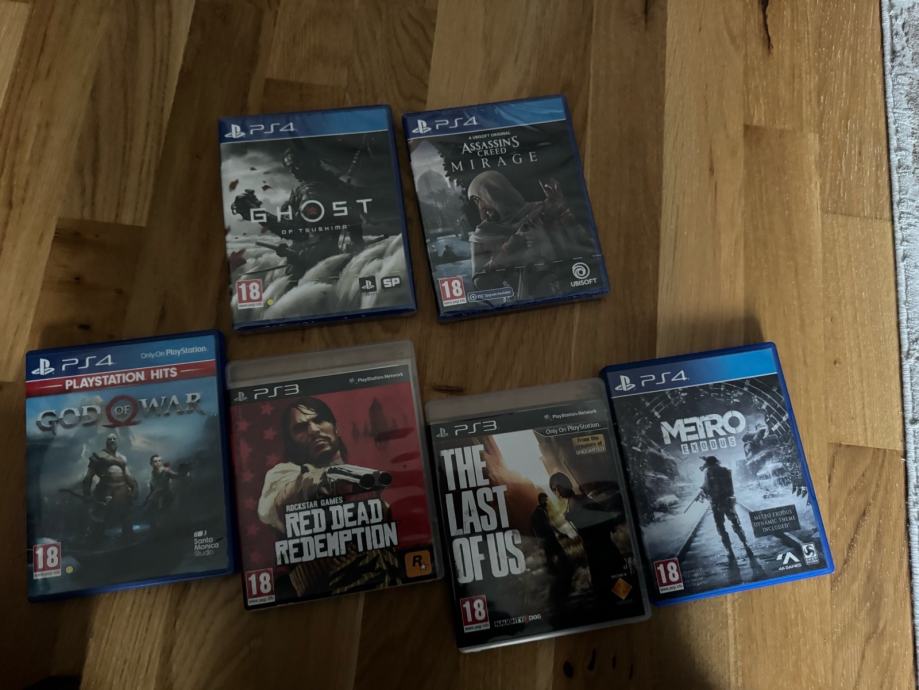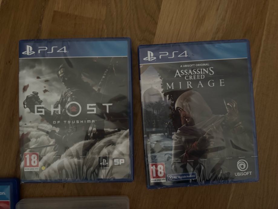 Plejka je ispravna i uz nju dolaze 2 kontrolera s fotki te igre s tim da su Ghost of Tsushima i Assasins Creed nove u foliji.