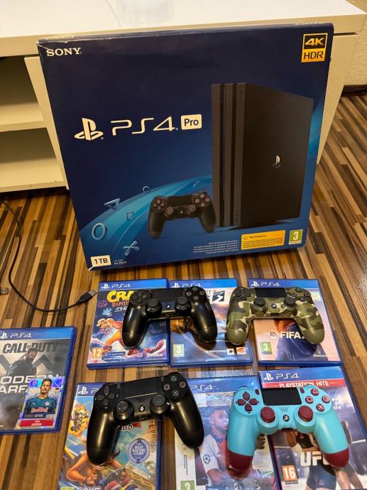 Playstation 4 PRO + 4 joysticka + IGRE