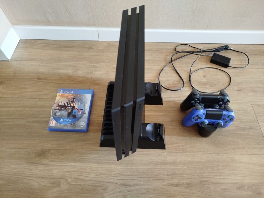 Prodajem rabljeni Playstation 4 Pro, stalak za hlađenje, Sony PS4 Dualshock Charging Station, 2 PS4 Dualshock controllera i Battlefield 1.