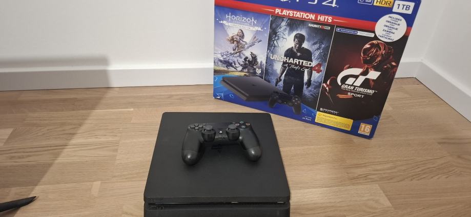 Prodajem PS4 Slim s 1TB memorije. Konzola je u top stanju, ne pregrijava se i ne zuji, a dolazi u originalnoj kutiji. Uz nju ide i originalan kontroler te pripadajući kablovi. Mažena i pažena! Primopredaja isključivo uživo na području SB i okolice (moguća dostava za PŽ). Uz nadoplatu moguće dobiti i dodatne igrice ili kontroler. Kontakt njuškalo porukom.