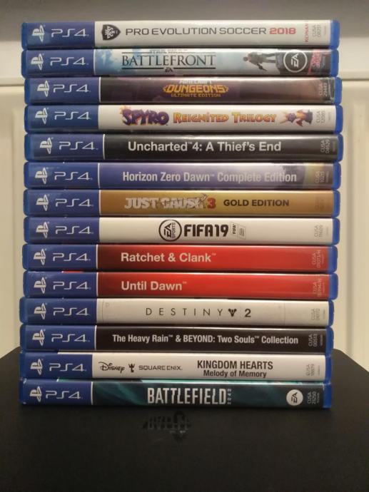 Dolazi sa svim kablima, kutijom, 2 joysticka ( 1 SONY, 1 NACON REVOLUTION PRO 2 ) te 15 igri vidljivih na slikama.