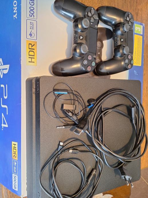 Playstation 4 slim 500GB sa 2 Joysticka, 2 kabla za punjenje, HDMI kabel, kabel napajanja, original slušalica, kutija.