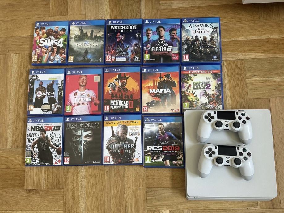 PlayStation 4 Slim (Bijeli) + 2 Kontrolera + 14 igara