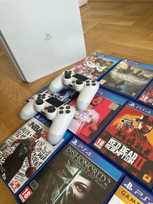 Prodajem PlayStation 4 Slim (Bijeli) + 2 Kontrolera + 14 Igara