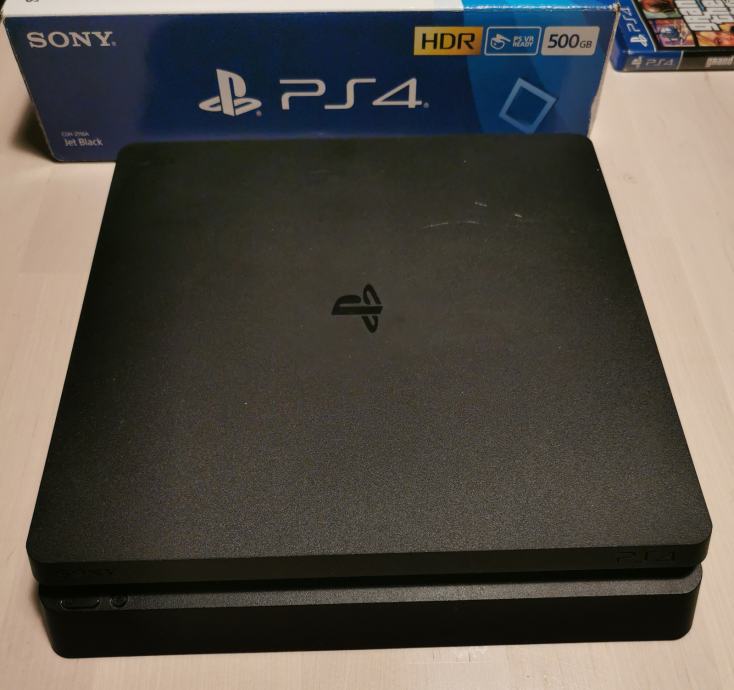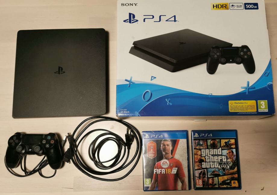 Prodajem rabljeni PlayStation 4 konzolu s 500 GB prostora i HDR podrškom. Konzola dolazi s originalnim kontrolerom i kablovima, a u komplet su uključene i dvije igre - FIFA 18 i GTA V. U dobrom je stanju, potpuno funkcionalna i spremna za korištenje.