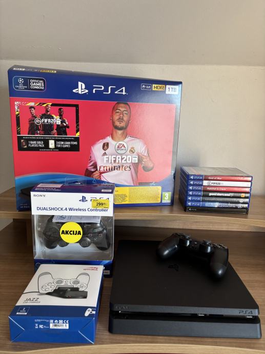 Prodajem igraću konzolu Sony Playstation 4, memorije 1 TB. Konzola je kupljena 2019. godine te minimalnk korištena, u odličnom stanju. Uz konzolu, prodajem i video igrice s fotografije te dodatni joystick kontoroler i stanicu za punjenje kontrolera (marka Speedlink). Mogućnost osobne isporuke na području Slavonskog Broda i okolice ili slanje poštom.