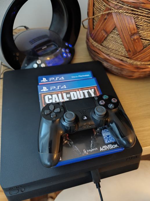 PS4 Slim 1000gb tri igre,kontroler sve u ptpuno ispravnom stanju,strujni,HDMI i za punjenje kontrolera se prilažu,naravno.