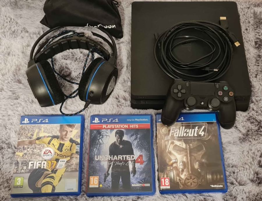 PS4 1TB + 50 igrica na računu + 3 igre na cd-u + Slušalice