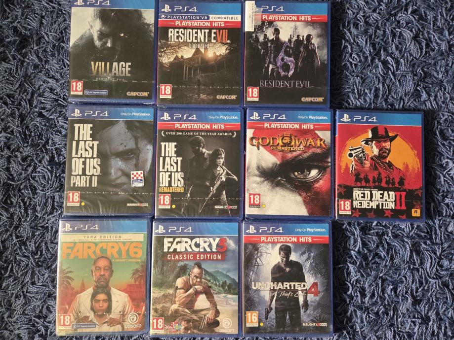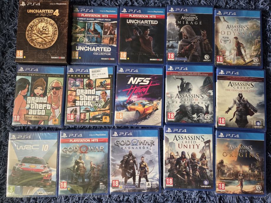 Prodajem rabljeni PlayStation 4 s tri kontrolera i impresivnom kolekcijom od 45 igara. Kolekcija uključuje popularne hitove poput GTA, Uncharted serijala, Assassin's Creed, God of War, Resident Evil i mnogih drugih. Nisam imao sve igrice kod sebe da slikam ali ubacit cu sve dodatno. Sve su na cd-u