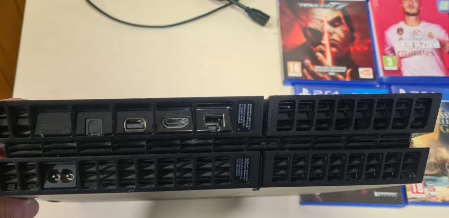 Prodajem PlayStation 4 konzolu s dva kontrolera i četiri igre. Konzola je potpuno funkcionalna i dolazi sa svim potrebnim kabelima. Uz nju idu dva DualShock 4 kontrolera u crnoj boji.