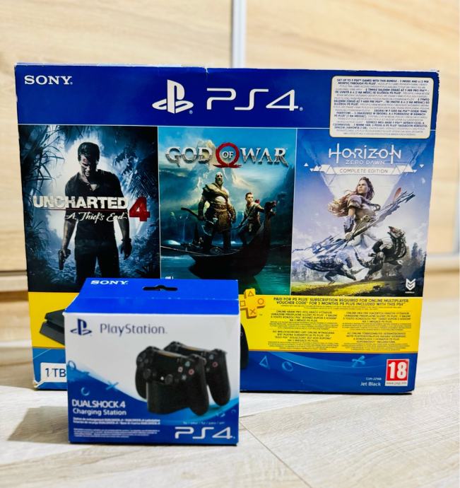 PS4 Slim 1TB + 2 kontrolera + charging station